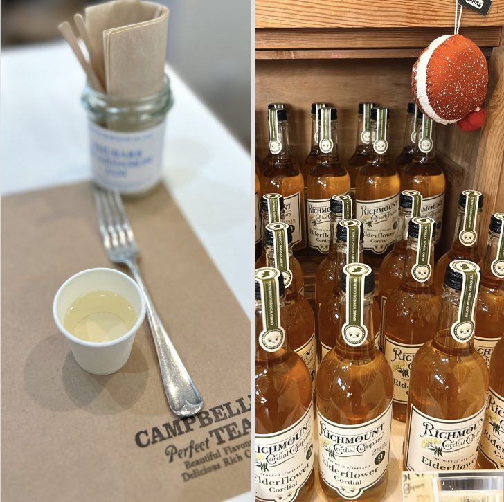 クラフトを堪能した後は温かい紅茶と英国菓子で一服しましょう。冬にいただくお湯割りのエルダーフラワーコーディアルもなかなかのもの!格別な香りの良さが楽しめます。
