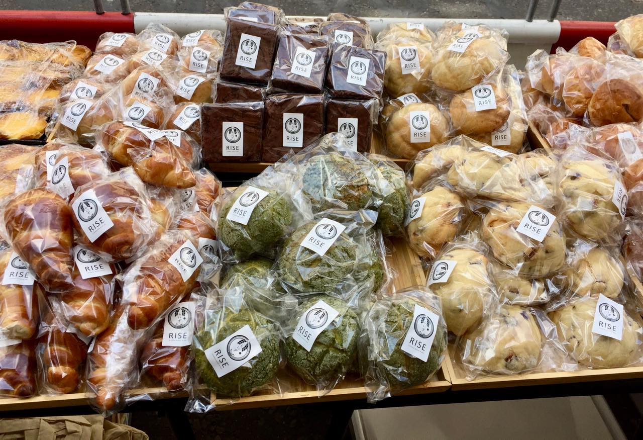 RISEのパンはもう1人のオーナー、Happy Sky Bakeryのもとこさんが作っています。RISEオリジナルのパンは天然酵母や酒粕などを使った、一味違うパンに仕上がっています。