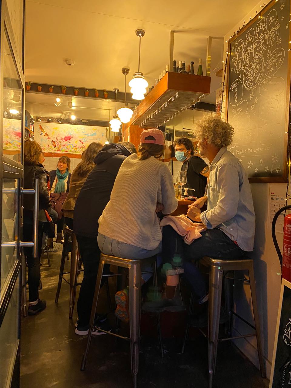 食事もできるナチュラルワインのバー。私はワインだけでしたがお食事は小さなプレートが多い感じで次回は食事もしてみたい。店内にワインセラーもあり、ボトルたちを眺めながらワインを楽しめます。