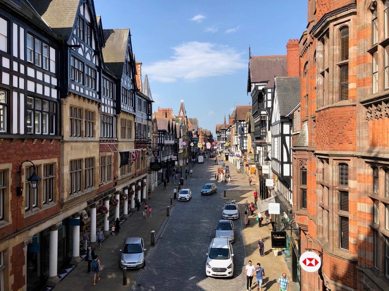 エナジーを取り入れた我輩は早速、チェスターで有名なチューダー様式の木骨造りの建物『ザ・ロウズ』を見物するのである。古さを感じる外観はロンドンにあるリバティー / Libertyに似ているのだ。建物の中はショッピングモールみたいに通路があり、左右にお店が並んでいるのである。